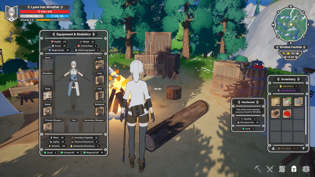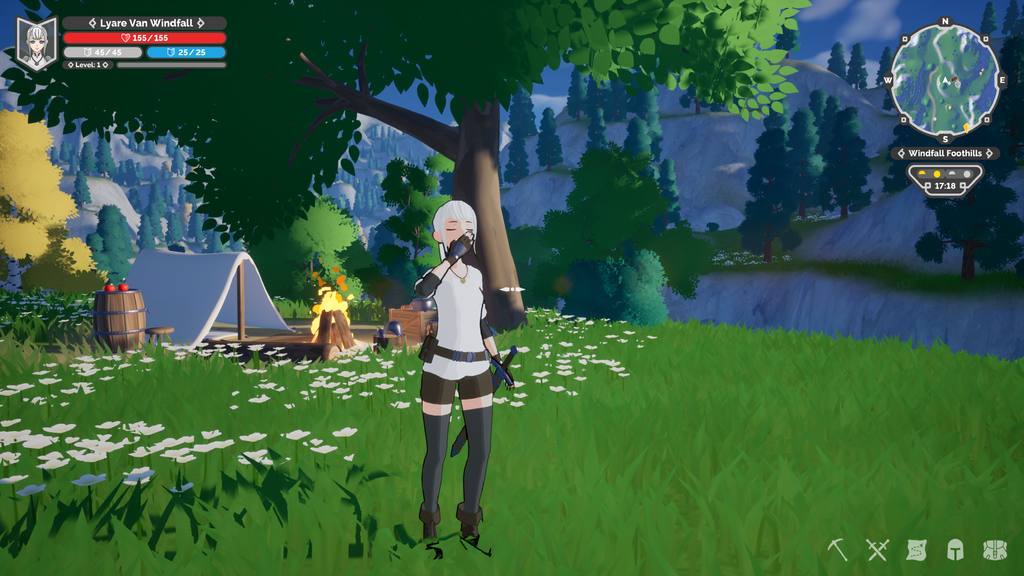 The harsh times on the battlefield have made Lyare a very skilled craftswoman. With the right materials, you can create and refine tools, weapons, and armor, as well as brew useful potions, and cook delicious meals.